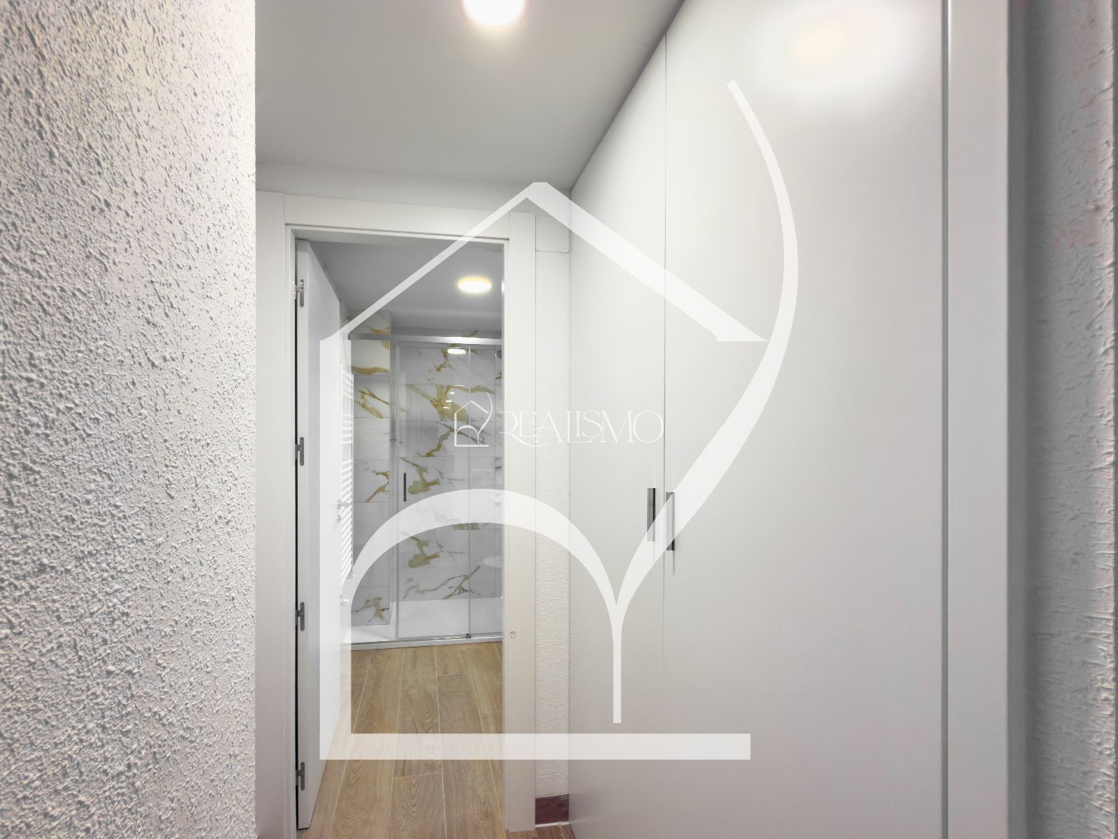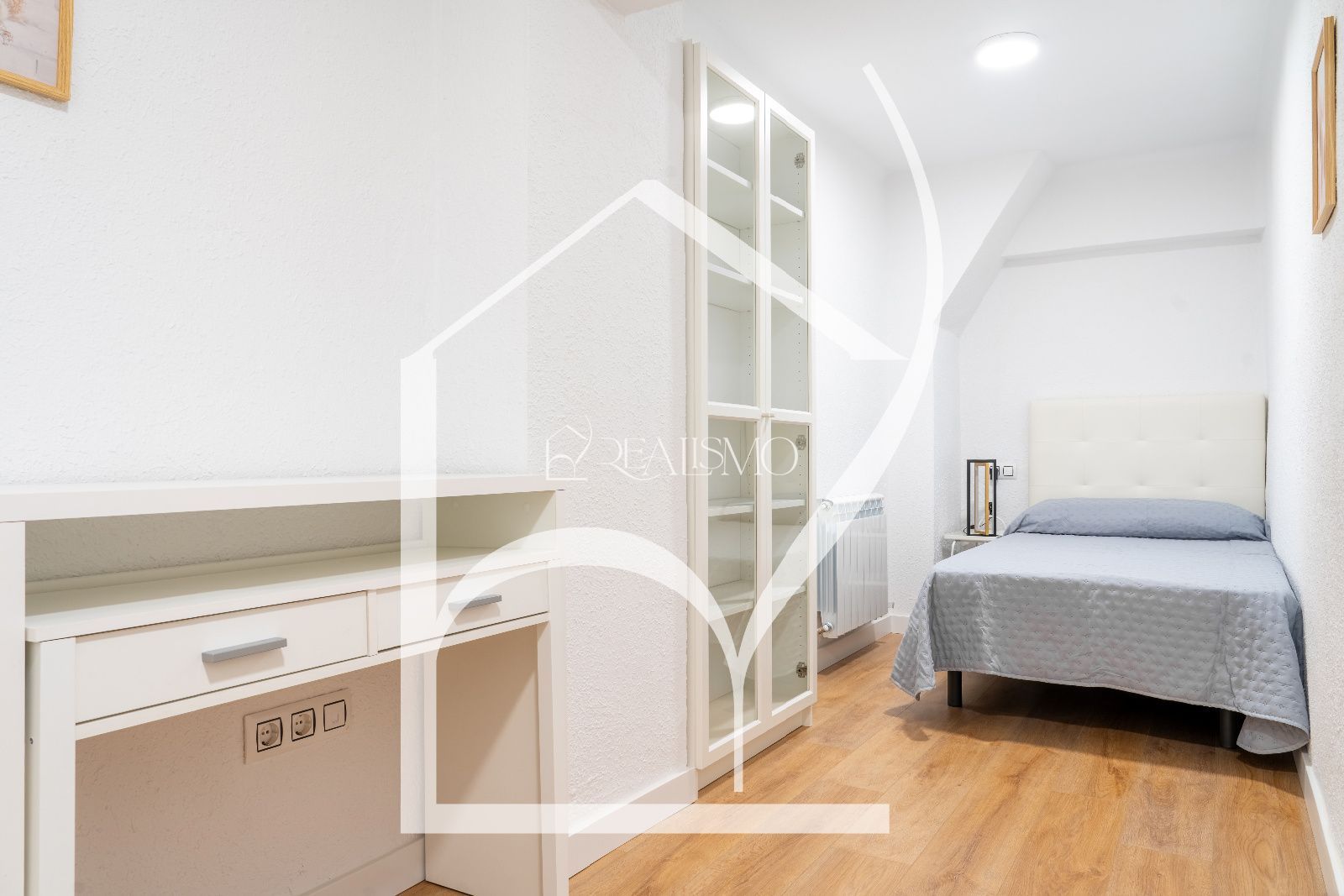 En la planta superior se ubican los dos dormitorios, ambos con armarios empotrados. El dormitorio principal destaca por su gran ventanal exterior con orientación sur, que aporta una excelente entrada de luz natural durante gran parte del día. La vivienda dispone además de un baño completamente nuevo con plato de ducha de pared a pared y acabados actuales.