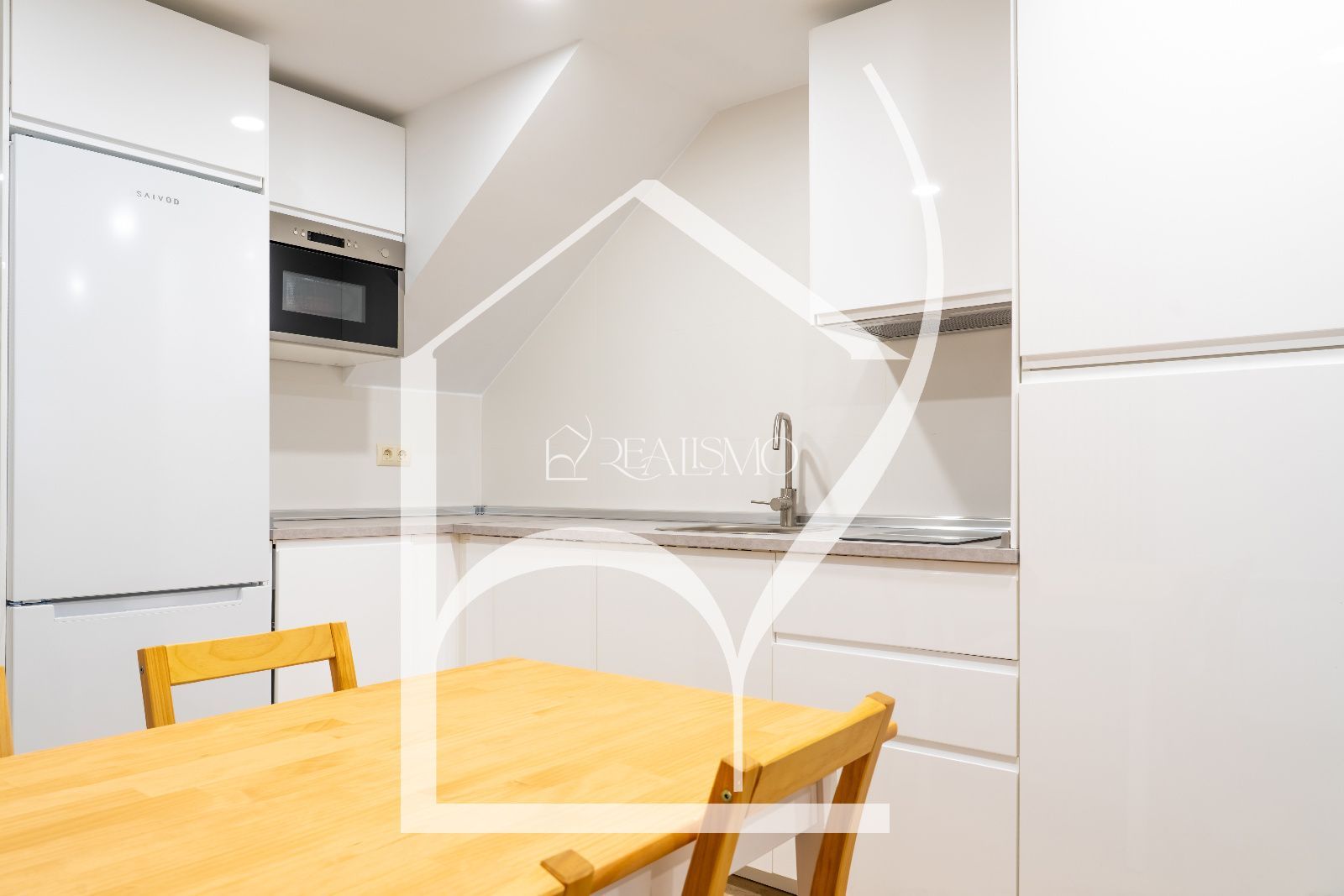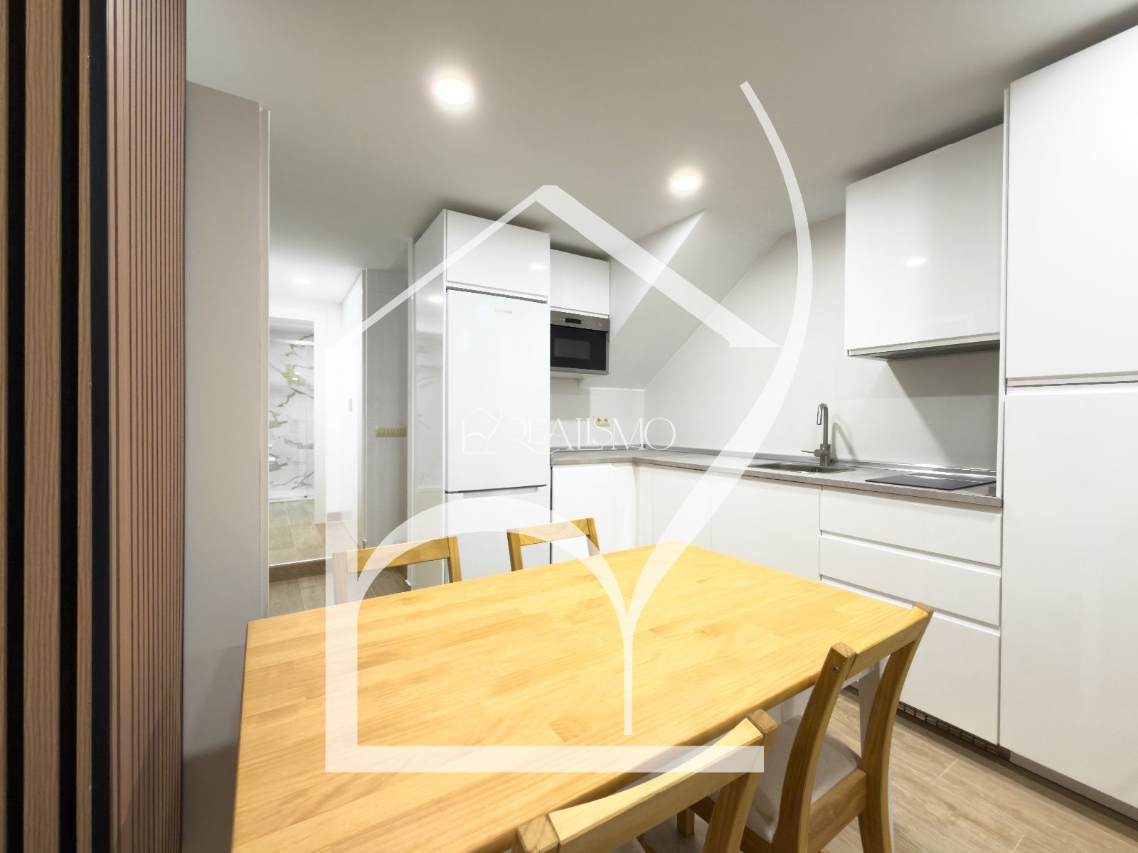 La planta principal acoge un espacio abierto de salón y cocina que organiza la vivienda en una zona de estar cómoda y una zona de comedor diferenciada. La cocina se entrega completamente equipada y amueblada, integrada en el espacio de forma práctica y moderna. En esta misma planta se encuentra un amplio espacio de almacenamiento con armarios empotrados que además se ha acondicionado como zona de office con lavadora y secadora, aprovechando al máximo la superficie disponible.